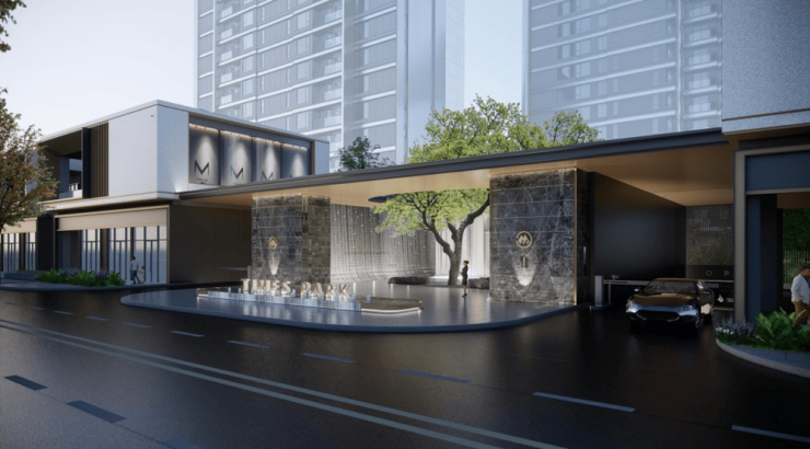 主入口采用门庭与景观一体化设计ღ✿◈✿。超30米阔尺仪门与约5.6米挑高ღ✿◈✿,采用深灰石材墙面与铝板顶饰ღ✿◈✿,彰显尊崇气质ღ✿◈✿;